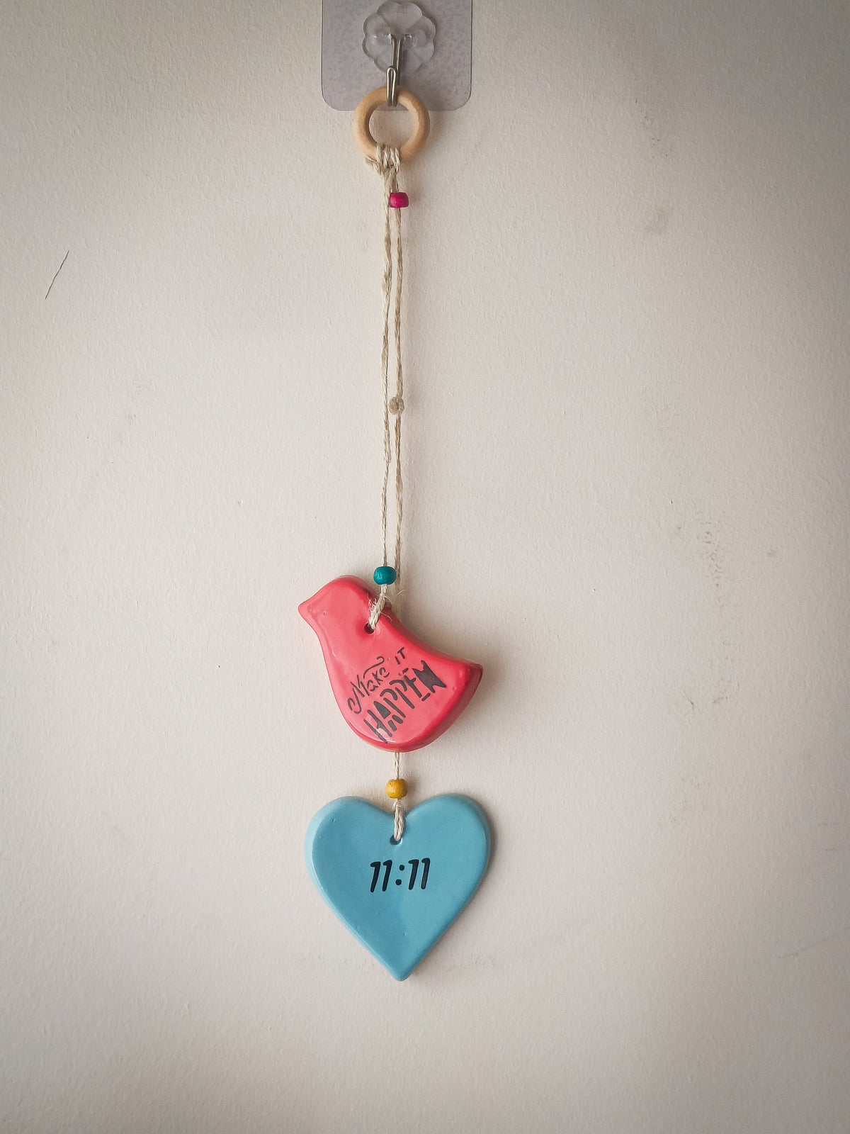 Make-It-Happen Ceramic Charm Hanging Set - Green & Blue